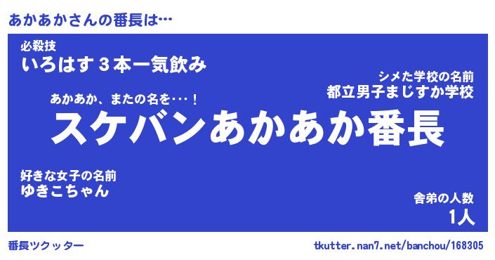 | ヘコむあだ名 | 『あかもー』『なまこ酢』『あかっぺ』 |