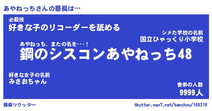 | ヘコむあだ名 | 『あやにー』『レバニラ』『あや太郎』 |