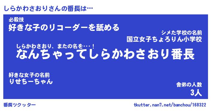 | 伝説のあだ名 | 『伝説のスナイパーしらかわさおり』 |