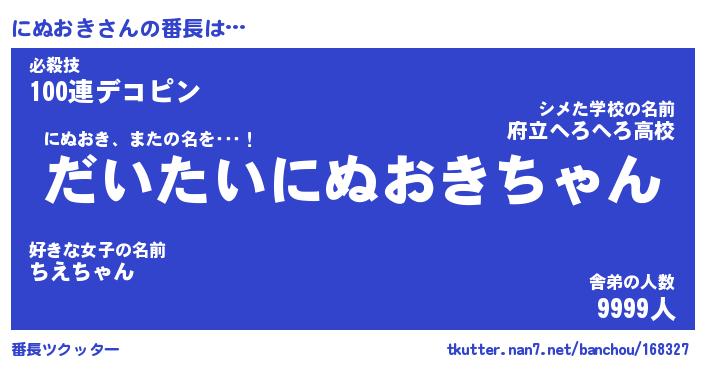 | 意味不明あだ名 | 『ペロリンにぬおき』『永久保存にぬおき』 |