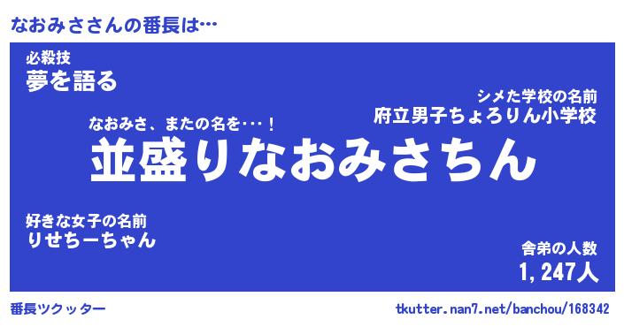 | ポケモン風あだ名 | 『ナオチュウ』『ナオミダネ』 |