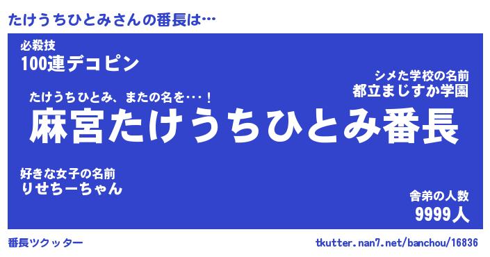 | ヒーロー風カッコイイあだ名 | 『スーパータケウチヒトミ』 |