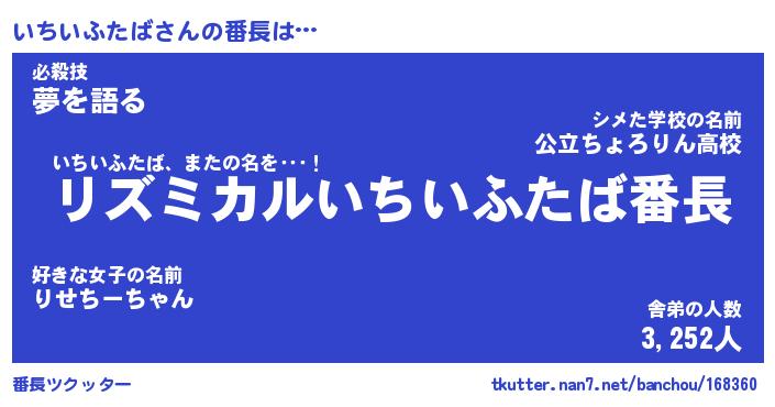 | 肩書あだ名 | 『いちいふたば店長』『いちいふたば班長』 |