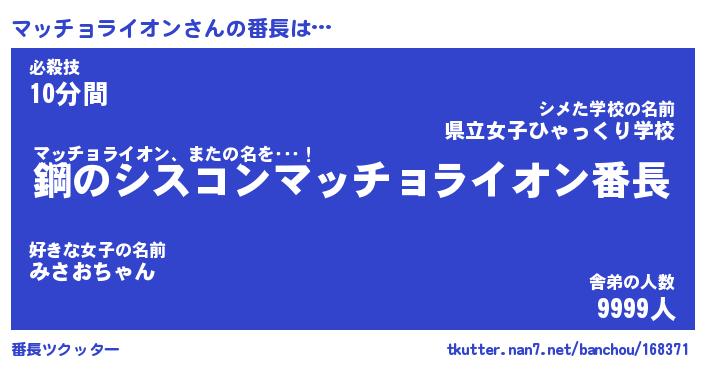 | 欧米人風あだ名 | 『マイケルマッチョライオン』 |