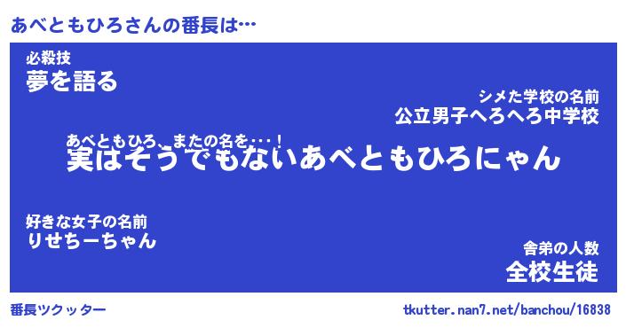 | 恥ずかしいあだ名 | 『プリティーあべともひろ』『あべっちょ』 |