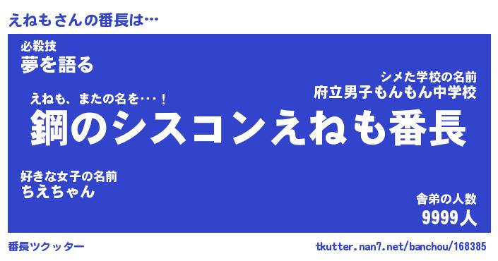 | 肩書あだ名 | 『えねもCEO』『えねも大統領』 |