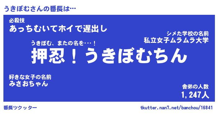 | 意味不明あだ名 | 『ペロリンうきぼむ』『永久保存うきぼむ』 |