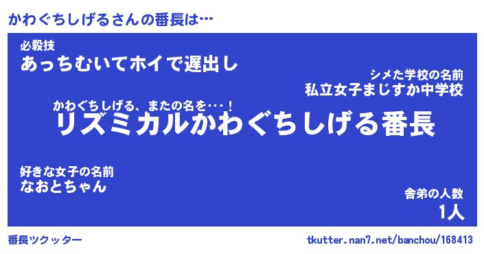 | 伝説のあだ名 | 『伝説のスナイパーかわぐちしげる』 |