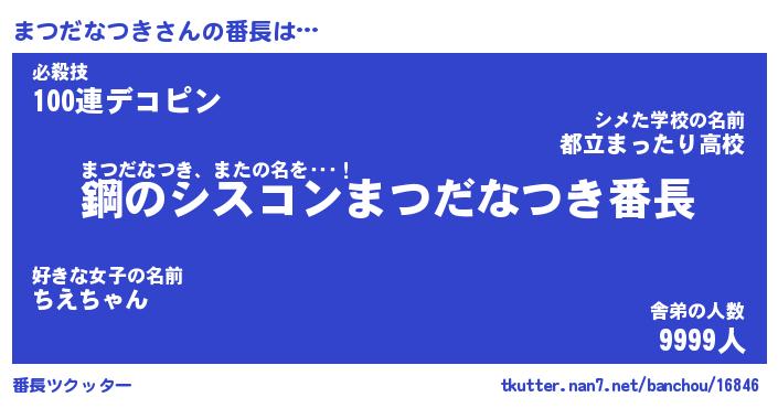 | ピコ太郎風あだ名 | 『マコ次郎』『ピマ十郎』『マツ八郎』 |