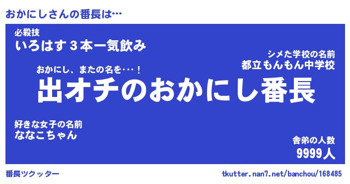 | 意味不明あだ名 | 『ペロリンおかにし』『永久保存おかにし』 |