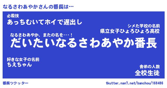 | 肩書あだ名 | 『なるさわあやか店長』 |