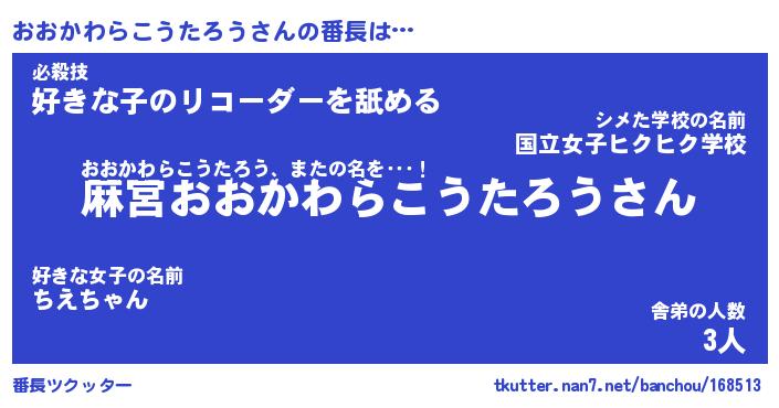 | ヒーロー風カッコイイあだ名 | 『スーパーオオカワラコウタロウ』 |