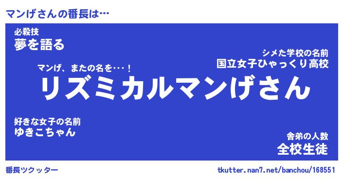 | ポケモン風あだ名 | 『マンチュウ』『マンゲダネ』 |