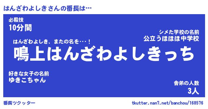 | ポケモン風あだ名 | 『ハンチュウ』『ハンザダネ』 |