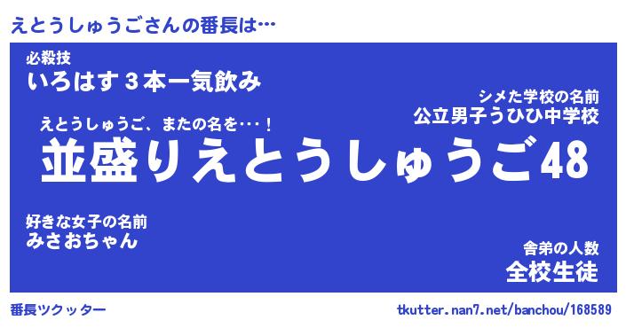 | 男性向けラノベタイトル風あだ名 | 『えとうしゅうごの憂鬱』 |