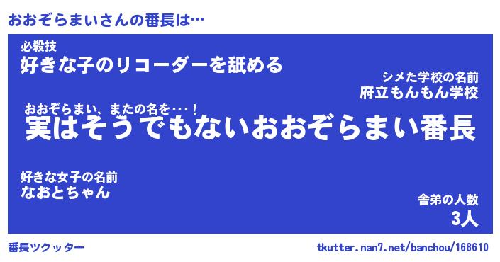 | ヘコむあだ名 | 『おおにー』『酢こんぶ』『おおお』 |
