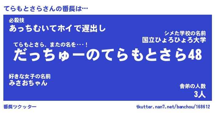 | 肩書あだ名 | 『てらもとさら社長』『てらもとさら班長』 |