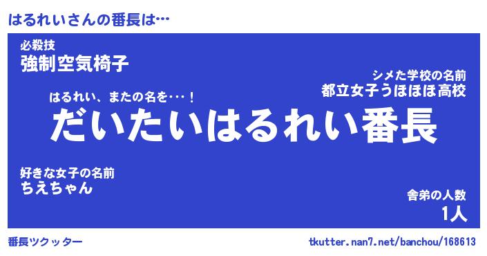 | 2回繰り返すあだ名 | 『はるはる』『ははるる』『うずうず』 |