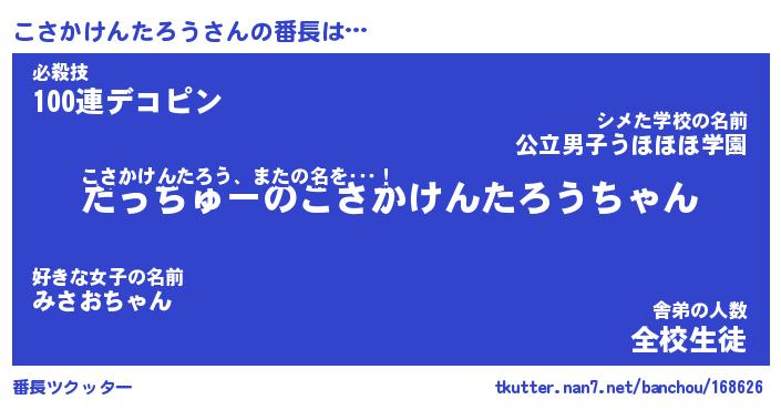 | 伝説のあだ名 | 『伝説のスナイパーこさかけんたろう』 |
