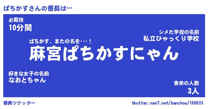 | 意味不明あだ名 | 『ペロリンぱちかす』『永久保存ぱちかす』 |