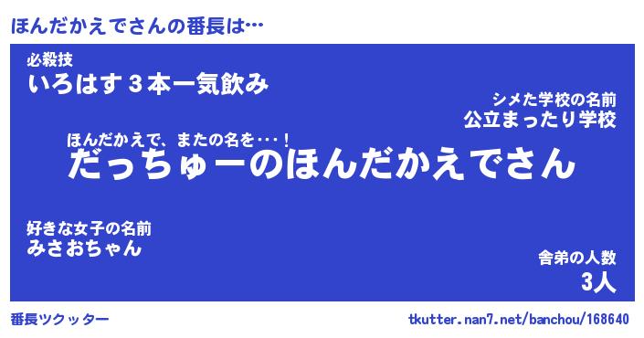 | ポケモン風あだ名 | 『ホンチュウ』『ホンダダネ』 |