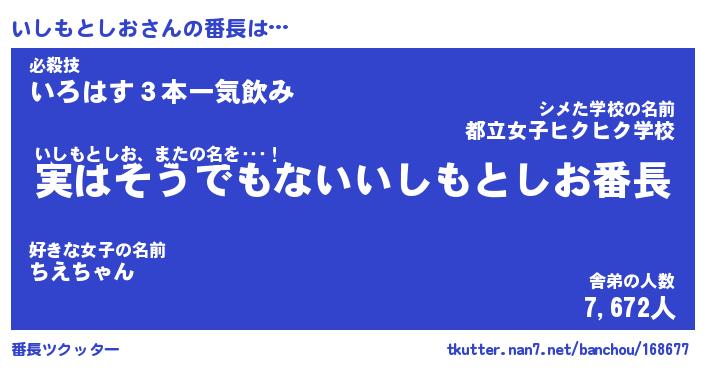 | 肩書あだ名 | 『いしもとしおCEO』『いしもとしお団長』 |