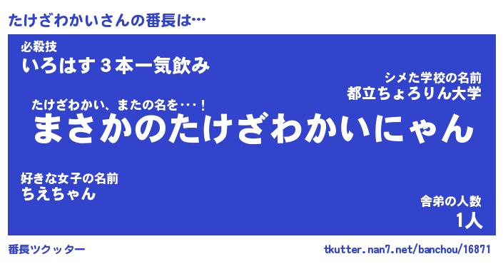 | 肩書あだ名 | 『たけざわかい御曹司』 |