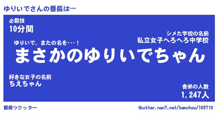 | 意味不明あだ名 | 『ペロリンゆりいで』『永久保存ゆりいで』 |
