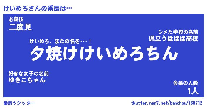 | 意味不明あだ名 | 『ペロリンけいめろ』『永久保存けいめろ』 |