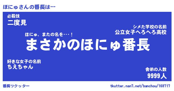 | ヒーロー風カッコイイあだ名 | 『スーパーホニュ』『ウルトラほにゅマン』 |