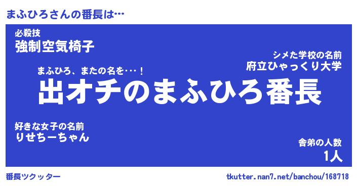 | 意味不明あだ名 | 『ペロリンまふひろ』『永久保存まふひろ』 |