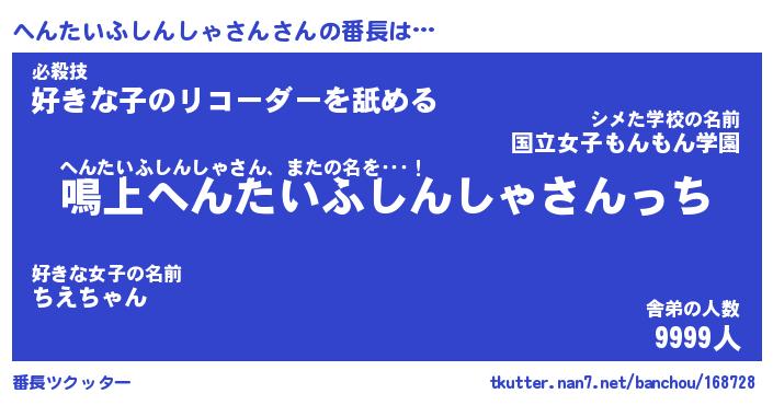 | ヒーロー風カッコイイあだ名 | 『スーパーヘンタイフシンシャサン』 |