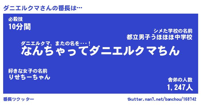 | 伝説のあだ名 | 『伝説のスナイパーダニエルクマ』 |