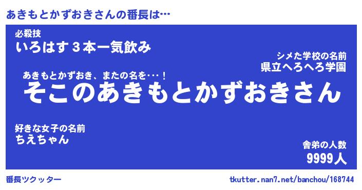 | 肩書あだ名 | 『あきもとかずおき社長』 |