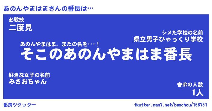 | 肩書あだ名 | 『あのんやまはま御曹司』 |