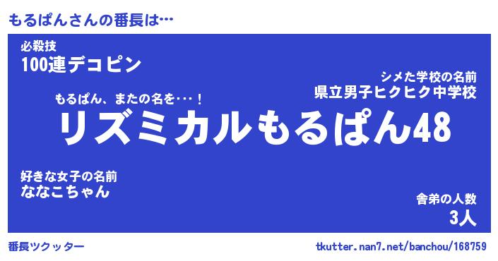 | 意味不明あだ名 | 『ペロリンもるぱん』『永久保存もるぱん』 |
