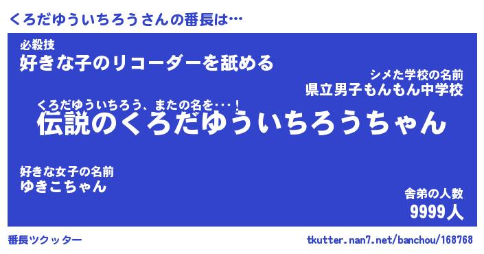 | 伝説のあだ名 | 『伝説のスナイパーくろだゆういちろう』 |