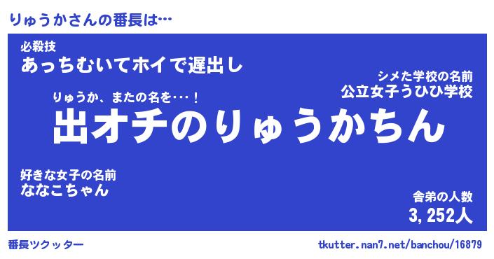| 伝説のあだ名 | 『伝説のスナイパーりゅうか』 |