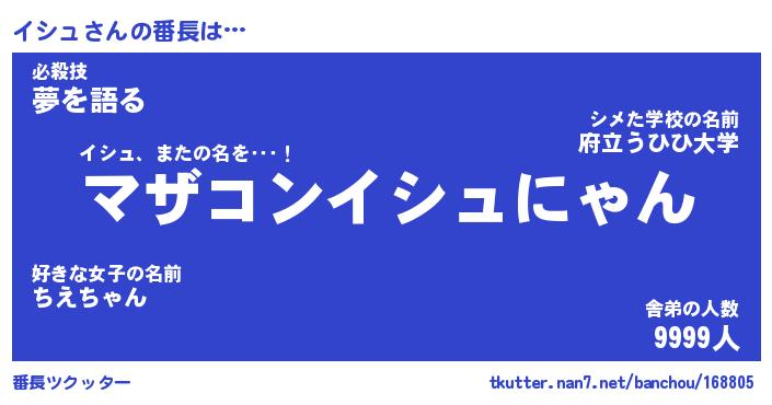 | 意味不明あだ名 | 『ペロリンイシュ』『イシュフォーエバー』 |