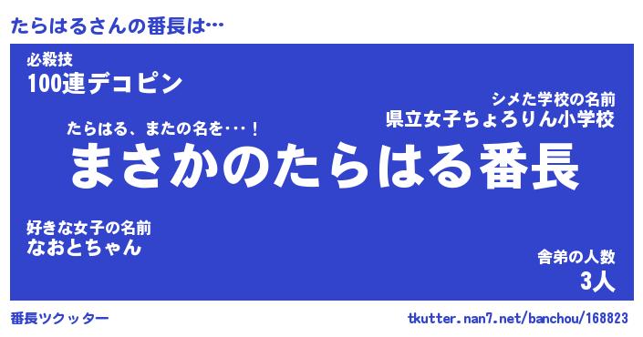 | ヘコむあだ名 | 『たらもー』『つくし』『たらっちょ』 |