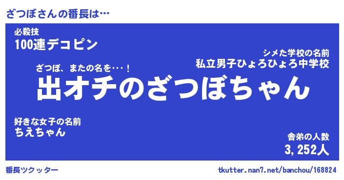 | ポケモン風あだ名 | 『ザツチュウ』『ザツボダネ』 |