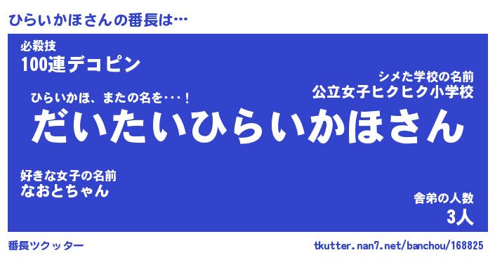 | ヒーロー風カッコイイあだ名 | 『スーパーヒライカホ』『暗黒騎士ヒラ』 |