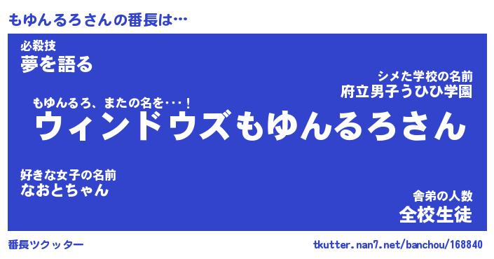 | 伝説のあだ名 | 『伝説のスナイパーもゆんるろ』 |