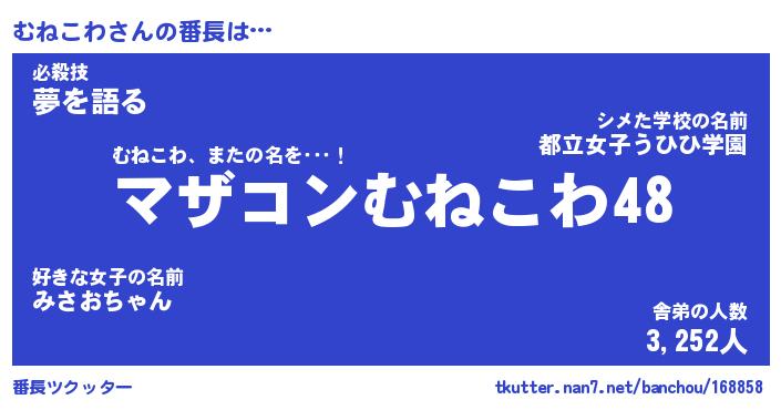 | ヘコむあだ名 | 『むねにー』『牛乳』『むねぷりん』 |