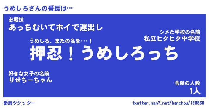 | 肩書あだ名 | 『うめしろ店長』『うめしろ総理大臣』 |