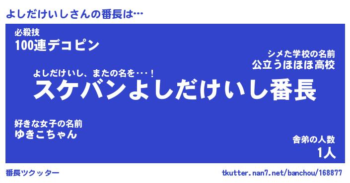 | ポケモン風あだ名 | 『ヨシチュウ』『ヨシダダネ』 |