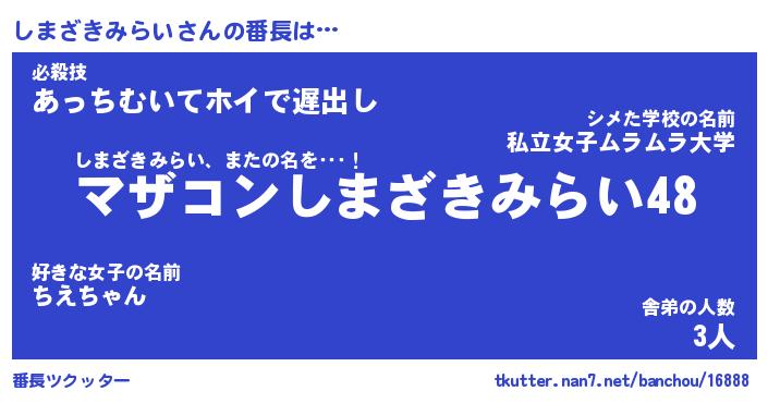 | 胡散臭い通販商品みたいなあだ名 | 『億万長者になれるブレスレット…その名も「しまざきみらい」』 |