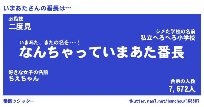 | 2回繰り返すあだ名 | 『いまいま』『いいまま』『ぬらぬら』 |