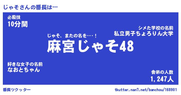 | 意味不明あだ名 | 『ペロリンじゃそ』『じゃそフォーエバー』 |