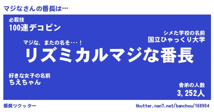 | ヒーロー風カッコイイあだ名 | 『スーパーマジナ』『ウルトラマジなマン』 |